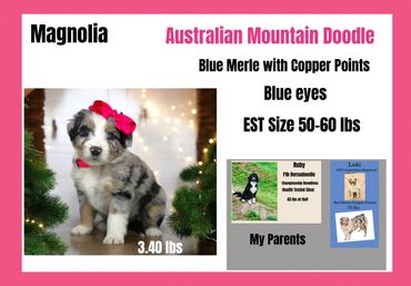 Good temperament in dogs is as important as their physical health. We use techniques from Puppy culture, ENS Early Neurological stimulation some of the tools we use to help our pups to be the best pups they can be for their families. The pups socialize with my Grandsons who live on the property also. They are loved on tremendously before they leave us. We do health-DNA test through Embark and Canine Health Check. We strive for the healthiest well rounded furbaby for you.